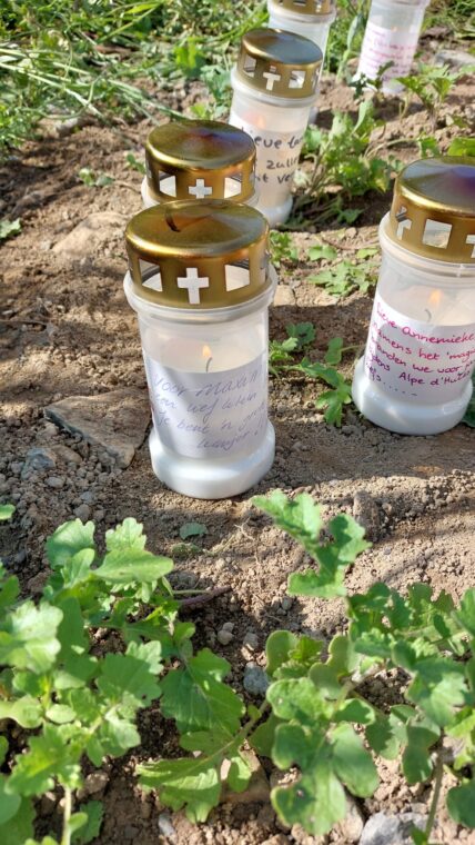 Om iets voor 11:00 uur krijgen we het bericht dat de finish bereikt is, wat knap! Wat een prestatie! 14 kilometer berg op gewandeld!!! Niet zomaar een heuveltje, maar een alp!!! Een speciaal kaarsjes voor onze Maxime meegenomen, bij de (helaas) vele anderen, maar wat een liefdevolle prestatie!!❤️