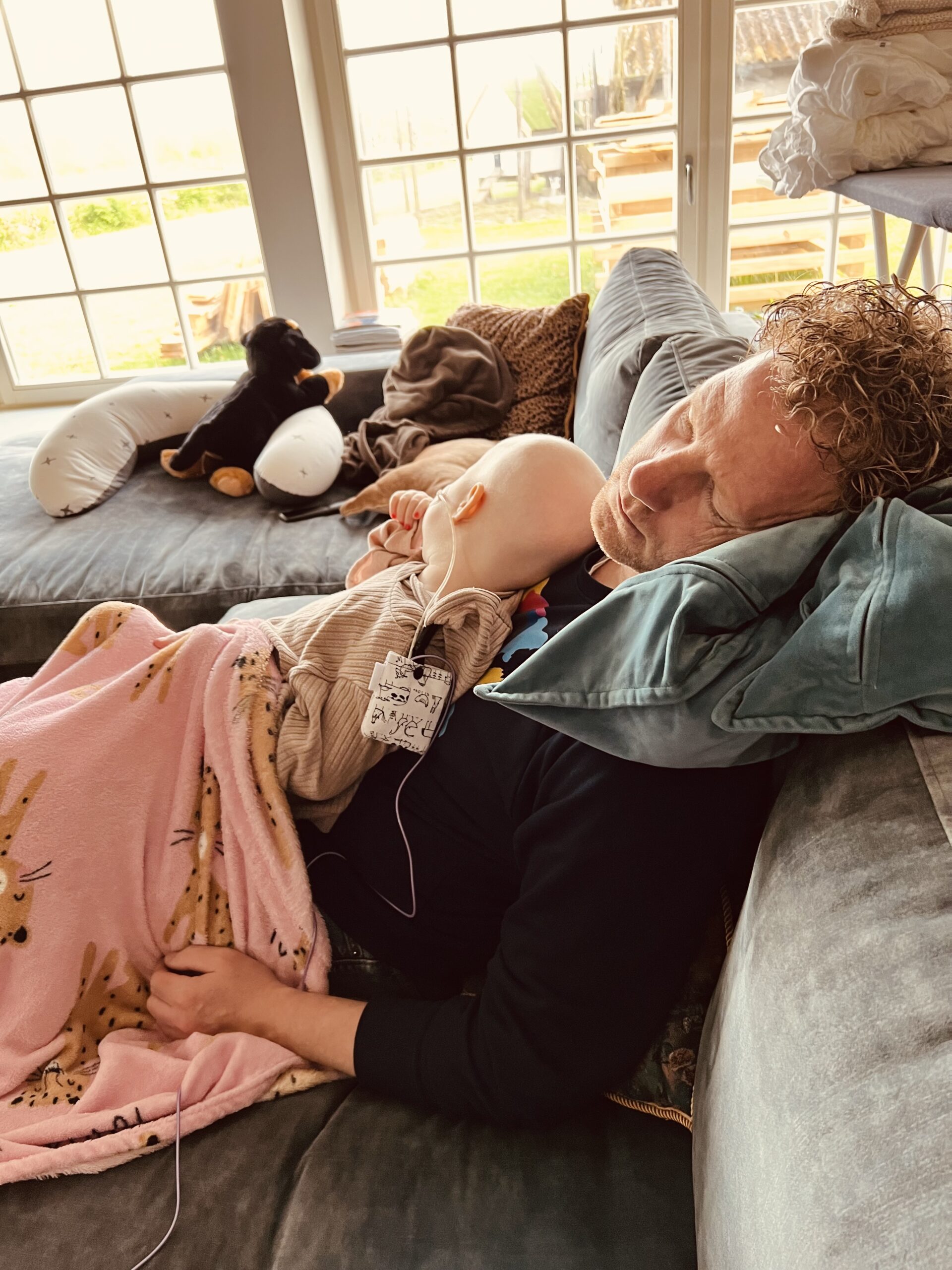 Daarna startte op 29 april voor het eerst een blok Ara-c, een middel dat door de thuiszorg gegeven werd. We hadden een paar weken geleden al een huisbezoek gehad van de thuiszorg omdat zij ook achterwacht zijn indien er iets mis zou gaan met de sonde. Hiervoor hadden we ze nog niet nodig gehad gelukkig, de sonde zat goed en daar was Maxime voorzichtig mee dus hier hadden we nog heen zorgen over. Het was ook de bedoeling dat als de sonde vervangen zou moeten worden, er geprobeerd zou worden om dit te doen tijdens de sedatie momenten. Dat scheelt een hele vervelende handeling voor Maxime.