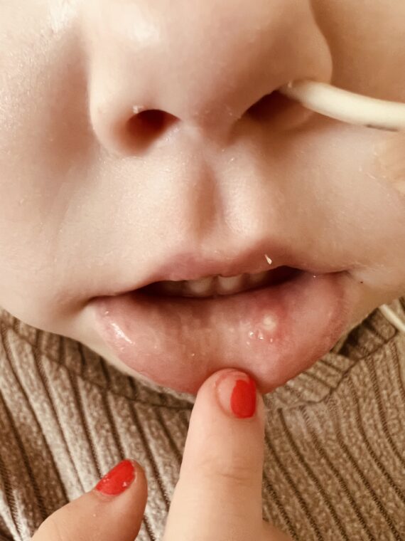 Na het toedienen van deze vier dagen ara-C was het afwachten of ze bijwerkingen zou gaan krijgen. Dit is niet in te schatten is gebleken, de ene keer kan ze ergens last van hebben terwijl de volgende keer de reactie op hetzelfde middel totaal anders kan zijn. Na de eerste toedieningen zagen we dat Maxime wat kleine defectjes kreeg in haar mondje en begon Maxime wat verhoging te ontwikkelen.
