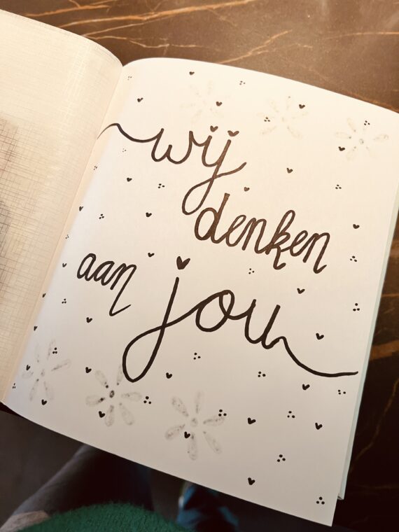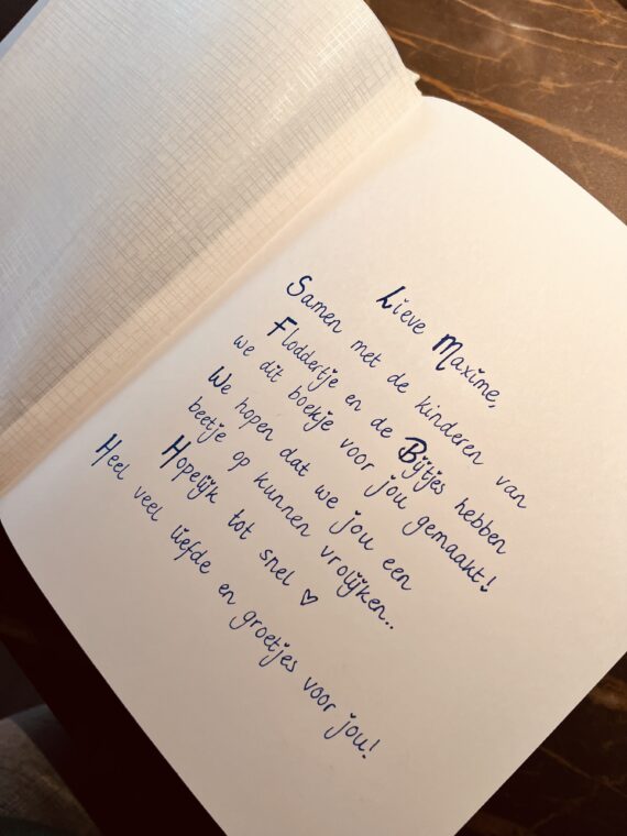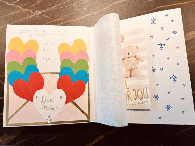 Na een tijdje ontvingen we ook nog een prachtig foto album, alle kindjes van Maxime haar groepje op de foto, zwaaiend, met hier en daar een verhaaltje erbij een heleboel lieve kaarten en wensen van alle leidsters. Wat heb ik hard moeten huilen bij deze album, wat een prachtig gebaar en wat mooi voor Maxime om zo toch even de kindjes en de leidsters te kunnen zien! Ze vond het zelf ook prachtig!!!!