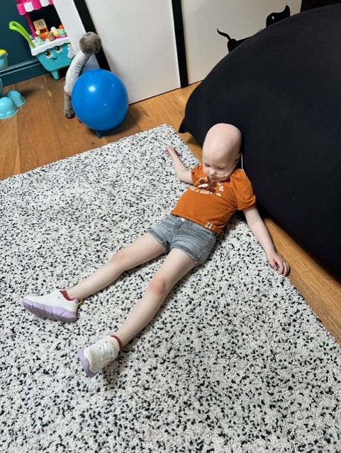 Sterker nog, het bleef niet alleen beperkt tot het niet kunnen lopen. De kracht in haar hele lijfje was totaal afgenomen. Er zijn weken geweest waarbij ze zo zwak was dat ze zichzelf zelfs niet meer kon omdraaien in haar bedje. Dat zorgde voor enorme onrust in de nachten voor haar en voor ons. Ze werd ongemakkelijk wakker omdat ze niet lekker lag en had ons dan nodig om zich te kunnen omdraaien. Dus, slapeloze nachten en vaak een verdrietig meisje, in ons bed, om haar maar zo snel mogelijk te kunnen helpen als de onrust opkwam. Dit waren weken waarbij we dus echt iedere 10 minuten van de nacht met haar bezig waren. Complete nachtdiensten.