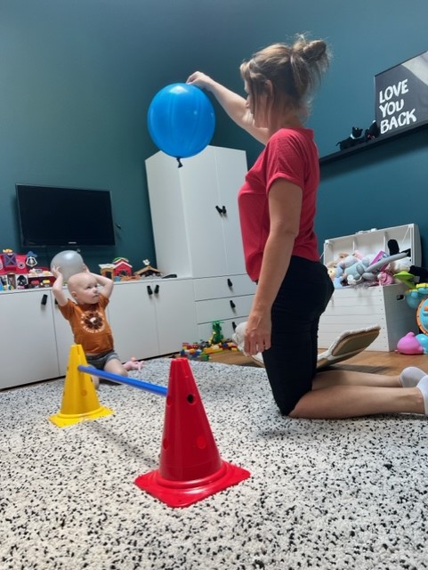 En daar kwam onze inmiddels zeer geliefde Kinderfysiotherapeute in beeld! Wat een ongelofelijke klik had Maxime vanaf moment 1 met haar! ( en wat zijn we daar blij mee!!) En ook hier was ik weer meteen onder de indruk van de manier waarop dit gaat met kinderen, echt een andere wereld!!! Er werd hard gewerkt door Maxime ( en door de Fysio;-) in onze speelkamer, we gingen van op de billen zitten naar op de knietjes zitten, van de knietjes zitten naar hoog op de knieën, en ook kruipen moest weer opnieuw geleerd worden.