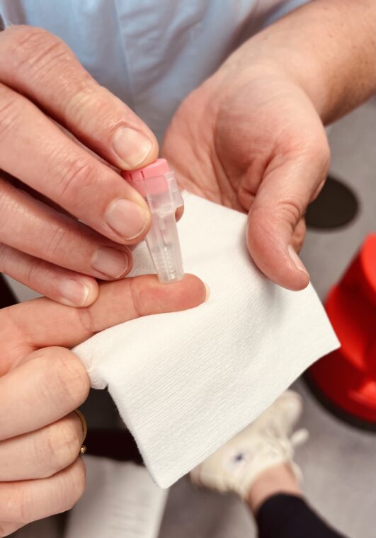 Op woensdag 11 oktober mochten we weer naar Venlo om te kijken hoe haar bloedwaarden ervoor stonden en om te zien of de opname de 18 haalbaar ging zijn. ( dan krijgt Maxime een vingerprik en wordt er met een buisje druppeltjes bloed opgevangen) En helaas, ze bleek te laag in haar waarden te zitten. ( 0,4 neutrofiele granulocyten voor de kuur is 0,5 de grens) Of dit ook door de medicatie kwam die we teveel gegeven hadden komen we natuurlijk nooit te weten maar daarmee was uitstel van de eerste opname wel een feit. Vervolgens mochten we op maandag de 16e weer opnieuw gaan prikken/ kwalificeren. We dachten eigenlijk dat het niet anders kon dan dat ze zou kwalificeren, we hadden immers alweer een halve week extra rust en herstel achter de rug, maar hier kwam verrassing nummer 2: haar bloedwaarden waren zelfs nog lager dan de week ervoor. Die hadden we “wederom” niet verwacht. Als we het hier over de bloedwaarden hebben dan hebben we het met name over haar “weerstand” en die wordt vooral gemeten op basis van de aanwezigheid van neutrofiele granulocyten in haar bloed. Deze waarde hoort in een gezond persoon tussen de 1.50 en de 8.50 te liggen. Als deze waarde onder de 0.5 komt dan heet dit neutropenie en dit wil zeggen dat de weerstand tot een dieptepunt is gedaald en iemand dus zeer zeer ontvankelijk is voor virussen en bacteriële infecties. Maxime haar waarde op 16 oktober was <0,1. ( en dat is als ouder best heel eng en spannend) Ze was immers op 12 oktober, naar de opvang geweest, omdat we in de veronderstelling waren dat haar waarden alweer stijgende waren…. Dan hou je als ouder echt je hart vast. Ben je alert op iedere nies, snottebel en snif die je hoort en hoop je iedere ochtend dat ze niet ziek uit bed komt. Dus, conclusie, niet naar de kindjes en wachten op de kwalificatie op 23 oktober, weer een week uitstel van de start van het volgende blok. En helaas, ook deze kwalificatie haalde ze niet, de waarde was nu 0,2. Ik zag hiermee het afscheid van haar vriendinnetje op de opvang in het water vallen, maar in overleg met onze verpleegkundig specialist in Venlo mocht ze toch gaan. Haar andere bloedwaarden waren inmiddels wel veel beter dan vorige week en de neutrofielen waren ook stijgende. Dus er was wel een lichte spanning over of dit wel goed zou komen toen we die dag gingen maar we gunden het haar toch. Gelukkig weten we inmiddels ook dat ze daar niet ziek van is geworden.