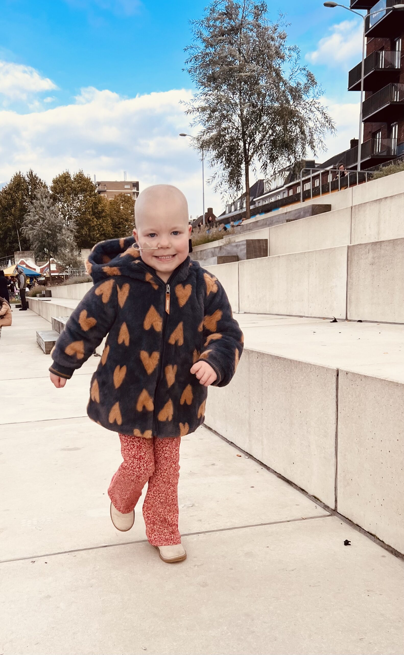 Je zou verwachten dat iemand met zo’n lage weerstand ook ziek is of zich niet fit voelt. Echter het tegenovergestelde hiervan is het geval op dit moment. We hebben dus weken achter de rug met heel weinig ziekenhuis bezoeken, geen naaldjes die aangeprikt hoeven te worden en geen nare infusen etc. Maxime is supervrolijk en blij en heeft energie! Ze wil net als iedere andere peuter rennen en spelen gek doen, meer dan we in de afgelopen maanden van haar gezien hebben in haar goede momenten, en ik kan niet anders zeggen dan dat we daar volop van genieten. Ze is ondeugend en eigenwijs en soms heel vervelend ook 🙂 (duidelijk een kindje dat geen of weinig grenzen heeft gekregen de laatste maanden, dat wordt denk ik nu de komende tijd weer onze uitdaging) We hebben nu dus eigenlijk onze handen vol aan het bezighouden van Maxime. 🙂