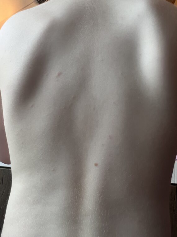 Verder vonden we haar sowieso echt niet fit. Op dit moment hadden we ook de juiste uitleg omtrent de waterpokken nog niet gehad, dus ergens was er ook nog de angst dat dit virus misschien ten grondslag lag aan haar matige conditie. Ze was er voor de vakantie natuurlijk wel aan blootgesteld. Verder was ze bleek, zo bleek had ik haar al maanden niet gezien en tot overmaat van ramp had ze ook nog eens een paar hele slechte nachten waarbij ze huilend wakker werd en vertelde dat ze zo’n pijn aan haar beentjes had. Al met al, we voelden ons alles behalve comfortabel, de klachten over de pijn aan de beentjes brengen ons op zo’n moment meteen terug naar het begin van alle ellende, wat ook begon met pijn aan haar benen o.a. en daar kregen we toch wel stress van deze keer weer!!